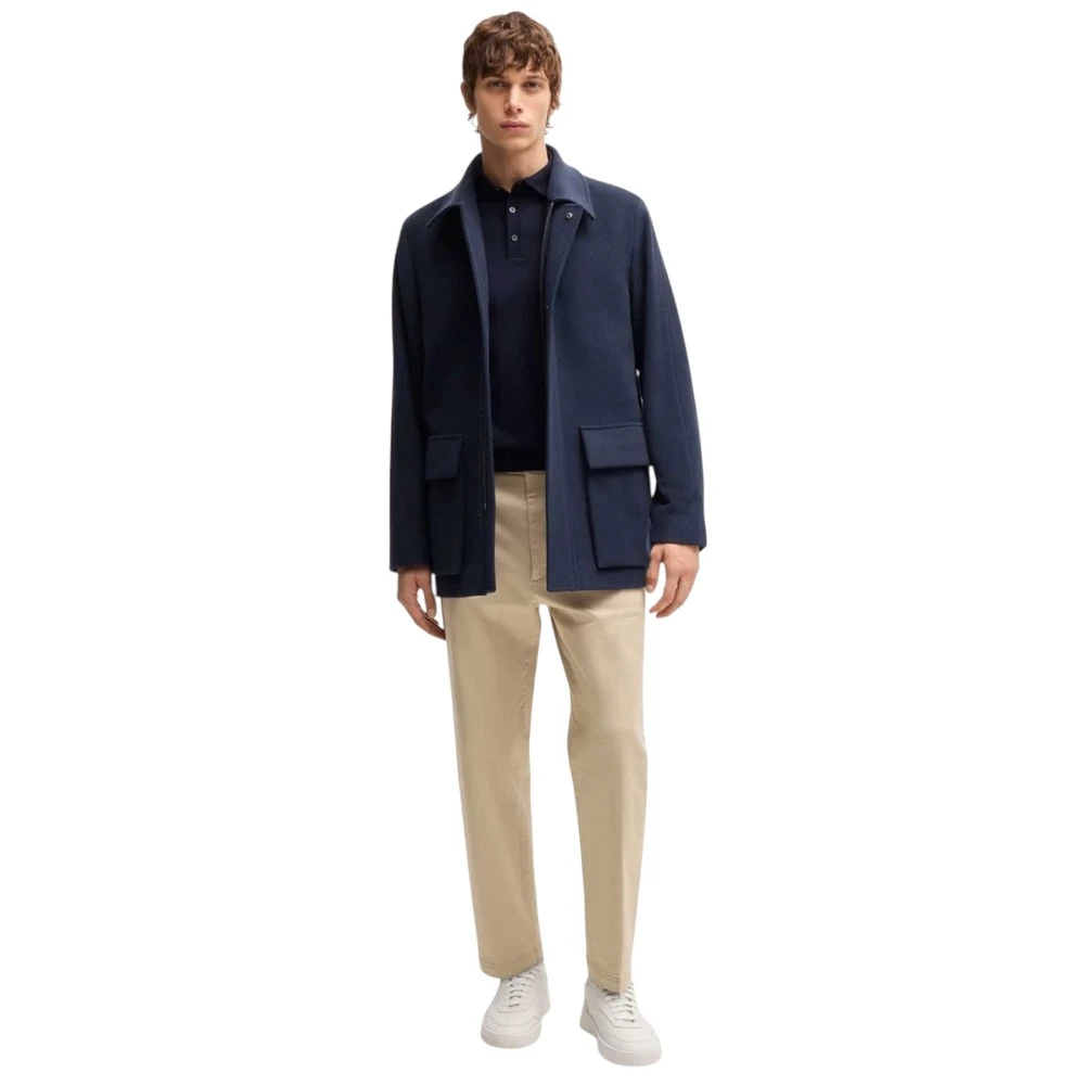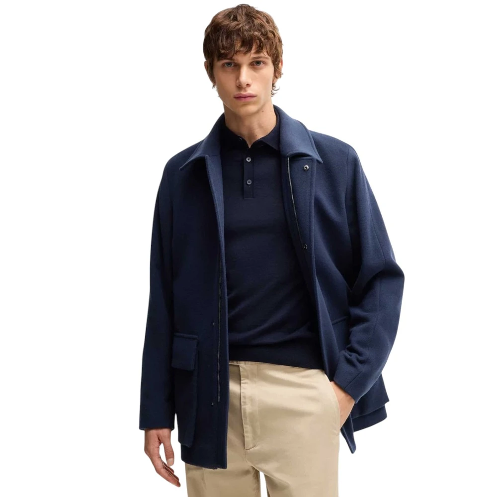 Классический крой делает модель универсальной: пальто легко сочетается как с деловыми костюмами, так и с более расслабленными повседневными образами. Чёткие линии силуэта подчёркивают мужественность и аккуратность, а насыщенный синий цвет добавляет образу глубину и элегантность. Продуманные детали и высокое качество исполнения отражают философию бренда Boss, где каждая вещь создаётся с акцентом на стиль и практичность.