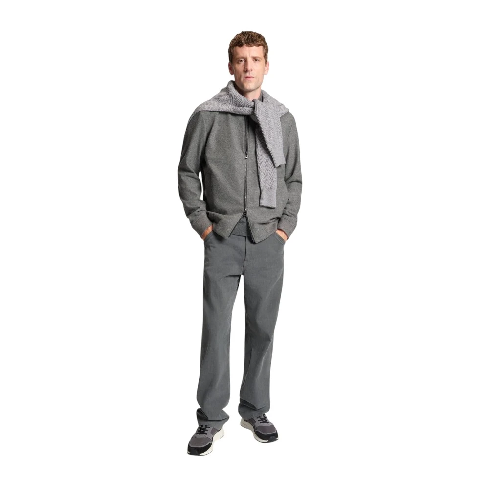 Лаконичный крой и минималистичный дизайн делают модель базовым элементом мужского гардероба. Свитер легко сочетается с классическими брюками, джинсами и пиджаками, позволяя создавать как строгие деловые образы, так и расслабленные повседневные комплекты. Серый оттенок подчёркивает универсальность модели, добавляя образу сдержанную элегантность и современную утончённость.