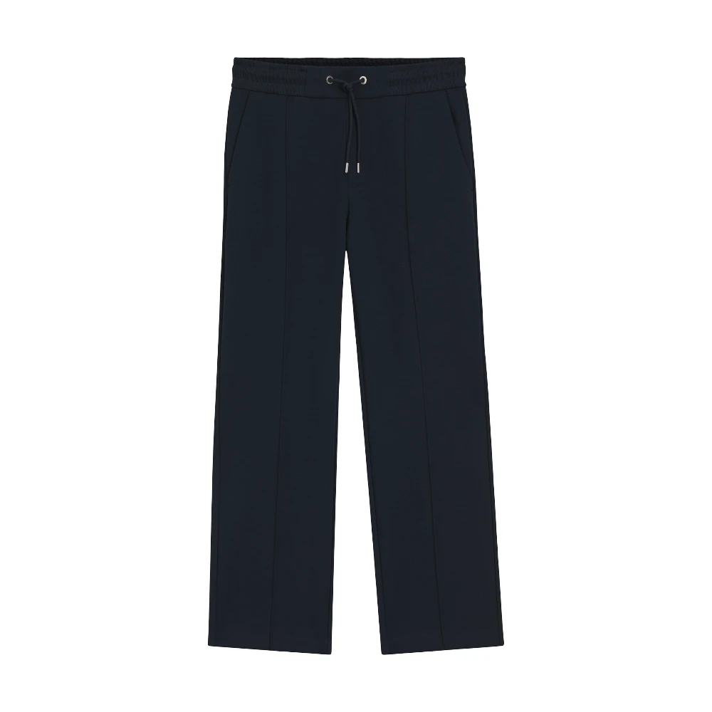 Особое внимание уделено деталям: эластичный пояс с аккуратным шнурком обеспечивает удобную посадку и адаптацию под индивидуальные предпочтения. Прямой крой формирует современный силуэт, а продуманные линии делают образ визуально более собранным и стильным. Темно-синий цвет остаётся универсальной основой, легко комбинируясь с футболками, поло и верхней одеждой.