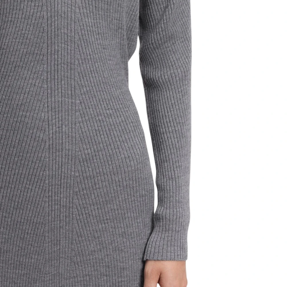 Продуманный крой подчёркивает силуэт, создавая женственный и аккуратный образ без ощущения стеснения. Серый цвет придаёт модели универсальность и легко сочетается с различными аксессуарами и обувью — от классических лодочек до более повседневных вариантов.