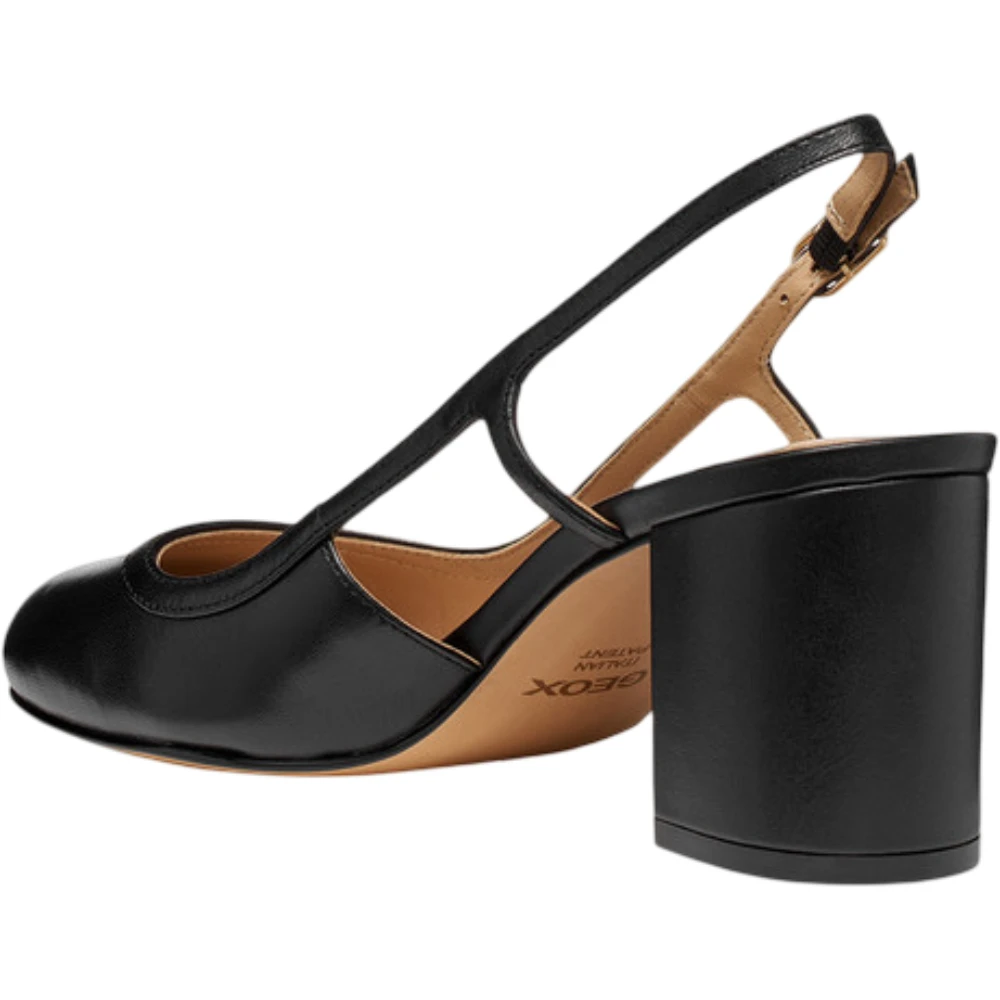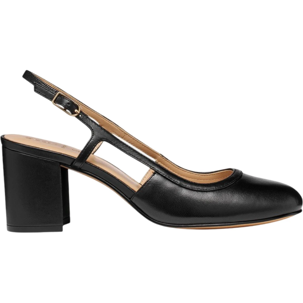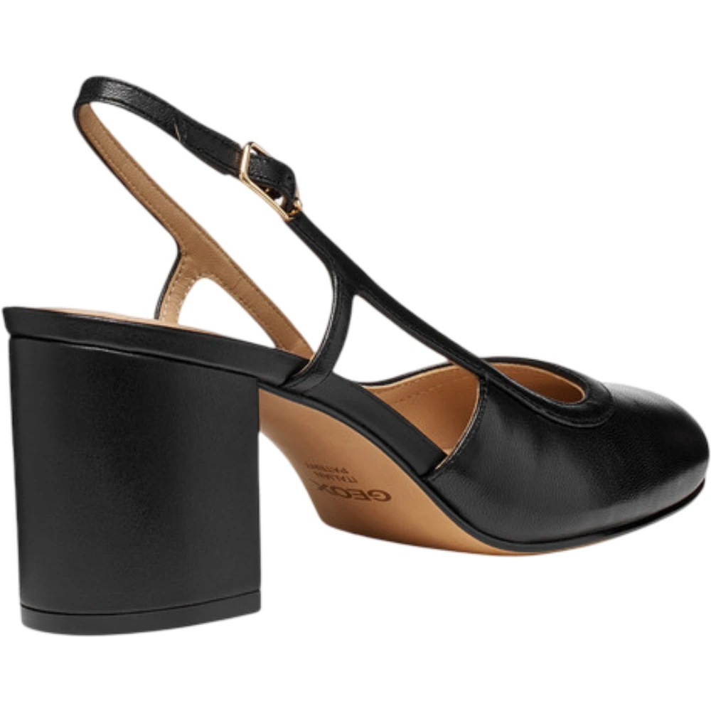 Закрытый округлый носок подчёркивает классический характер модели, а открытая задняя часть с тонким регулируемым ремешком придаёт силуэту лёгкость и визуальную утончённость. Устойчивый каблук обеспечивает комфортную поддержку и делает модель подходящей для активного дня, сохраняя элегантность походки.