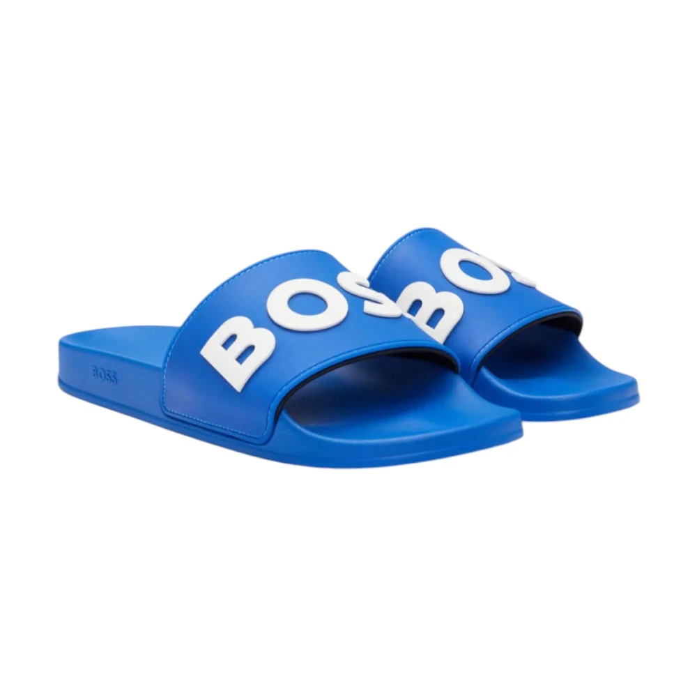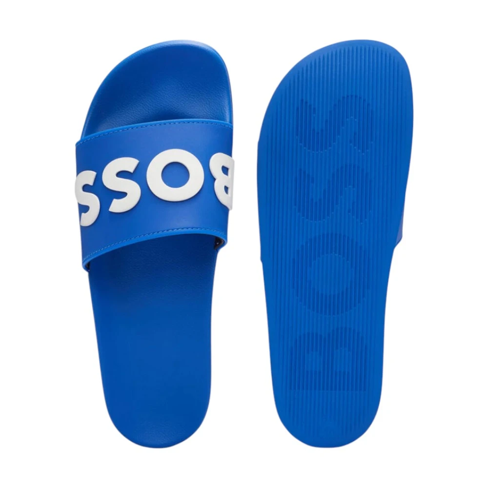 Широкий ремешок надёжно фиксирует ногу и украшен контрастным логотипом Boss, который придаёт модели современный и выразительный вид. Рифлёная подошва обеспечивает хорошее сцепление с поверхностью, повышая устойчивость даже на влажных покрытиях.