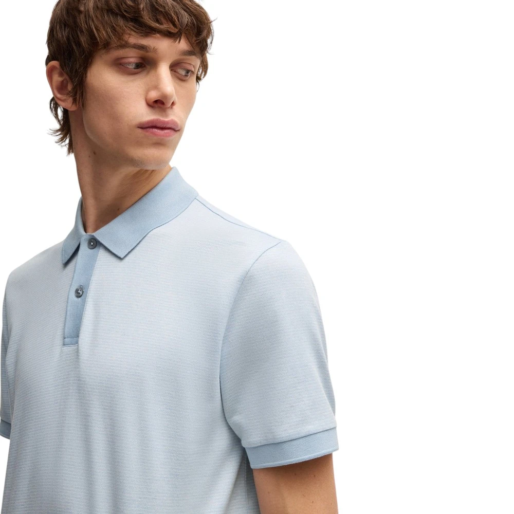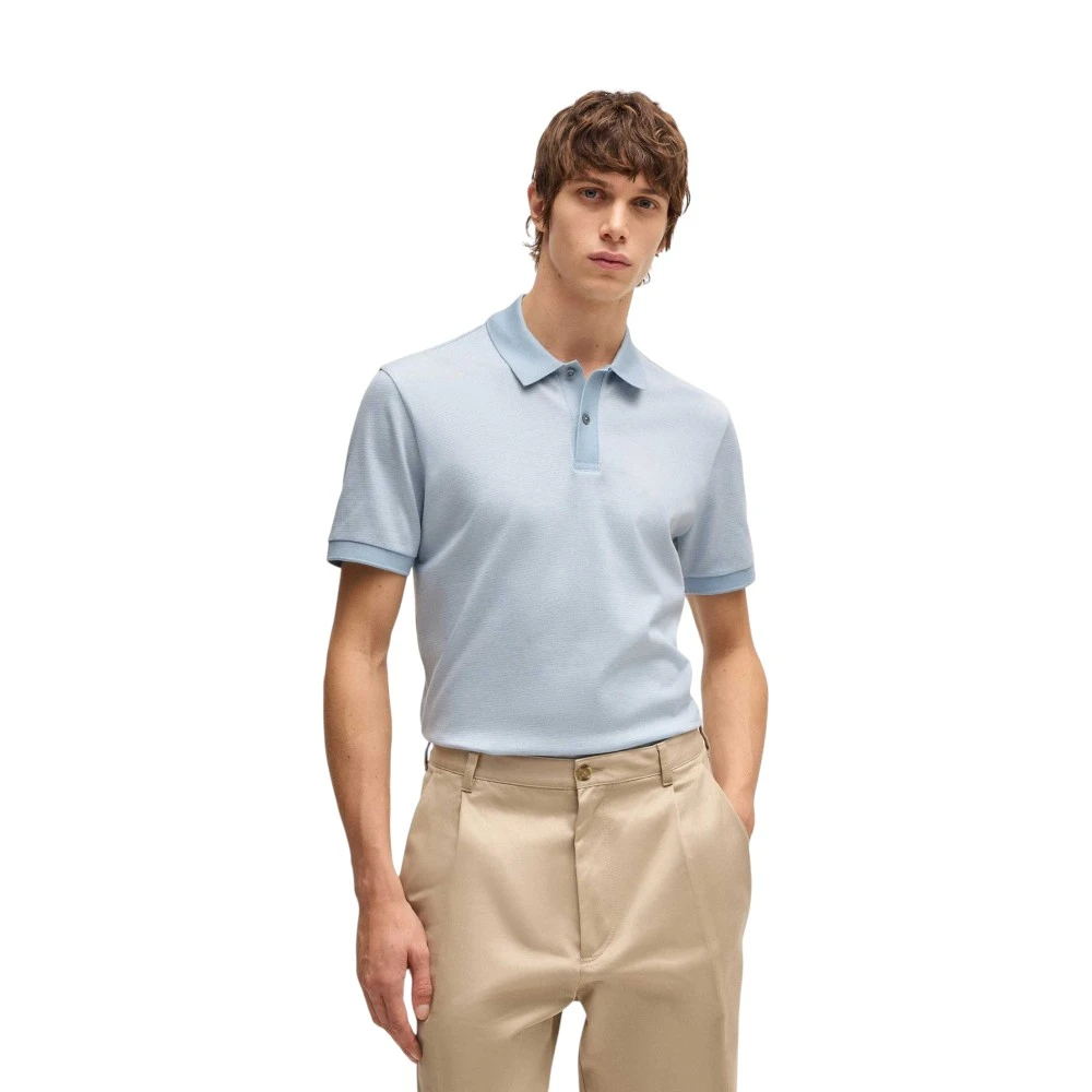 Мужское поло Boss H-Parlay в голубом цвете — элегантная и универсальная модель для современного гардероба. Светлый голубой оттенок придаёт образу свежесть, лёгкость и утончённость, а лаконичный дизайн позволяет сочетать изделие как с классическими брюками, так и с джинсами или шортами. Такое поло станет отличным выбором для повседневных образов, встреч, прогулок и отдыха.