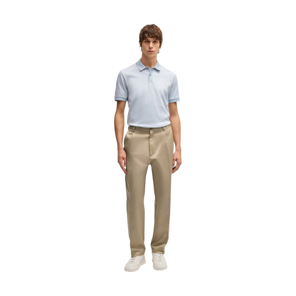 Модель выполнена из мягкого и приятного к телу материала. Ткань отличается хорошей воздухопроницаемостью, комфортной посадкой и износостойкостью. Материал обеспечивает удобство в течение всего дня, помогает сохранять аккуратный внешний вид и дарит ощущение лёгкости даже в тёплую погоду. Качественное исполнение и внимание к деталям подчёркивают премиальный стиль бренда Boss.