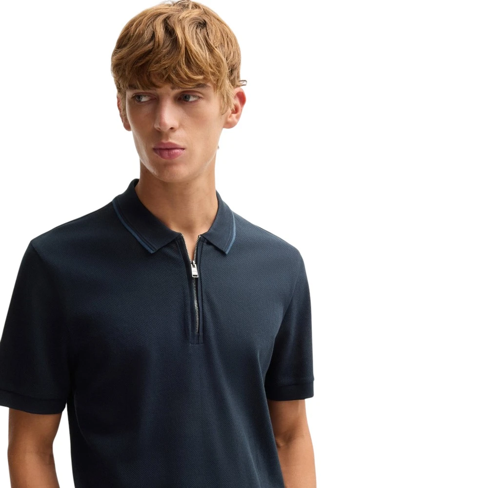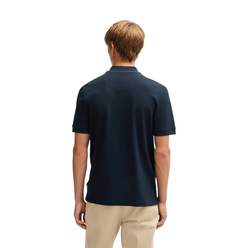 Мужское поло Boss H-Paras в темно-синем цвете — универсальная и элегантная модель, которая станет стильной основой современного гардероба. Глубокий насыщенный оттенок тёмно-синего подчеркивает сдержанный характер изделия и делает его уместным как для повседневных образов, так и для более строгих сочетаний в стиле smart casual. Такое поло легко комбинируется с классическими брюками, джинсами или шортами, создавая аккуратный и уверенный образ.