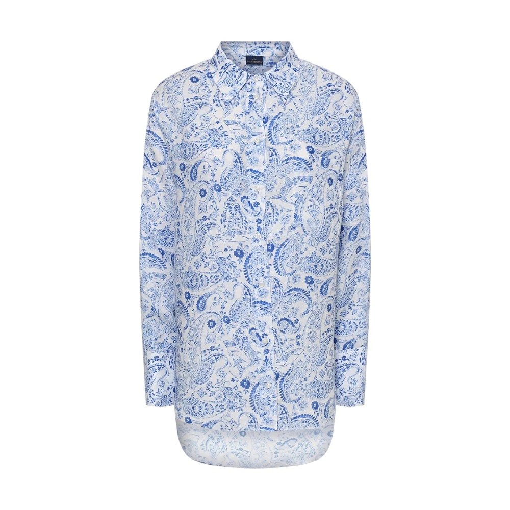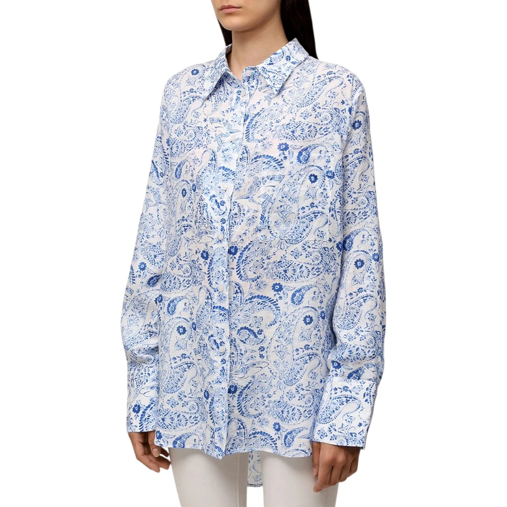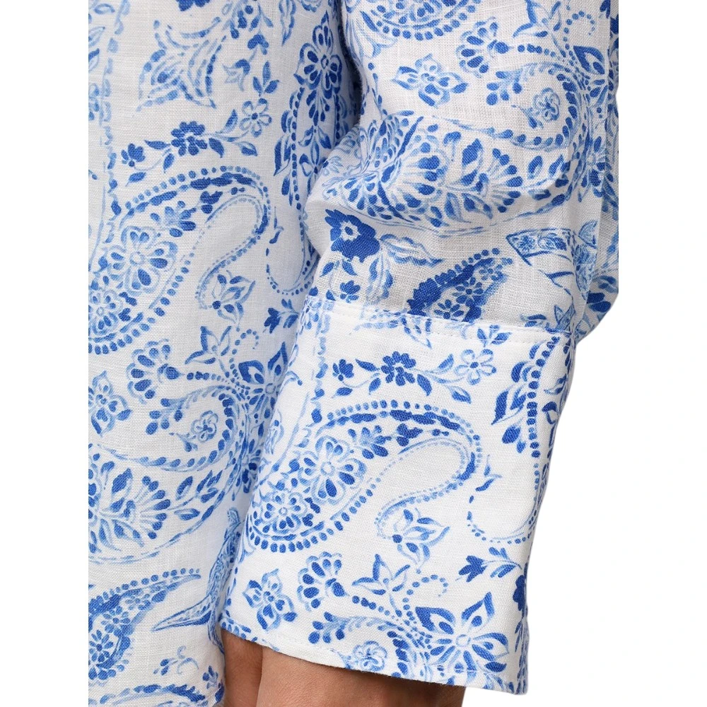 Ayollar uchun Paul & Shark ko‘ylagi nafis ko‘k rang va bezakli print bilan ajralib turadi. Model 100% zig‘ir (len) matosidan tayyorlangan bo‘lib, u o‘zining tabiiyligi va yuqori havo o‘tkazuvchanligi bilan qadrlanadi. Mato terining nafas olishini ta’minlab, issiq havoda ham qulaylik va salqinlik hissini beradi.