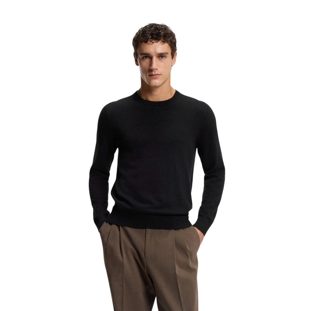 Erkaklar uchun Boss H-Emigliore sviteri qora rangda — bu premium sifat, minimalistik dizayn va maksimal qulaylikning mukammal uyg‘unligidir. Model 100% kaşmirdan tayyorlangan bo‘lib, u eng qimmat va yumshoq tabiiy materiallardan biri hisoblanadi. Kaşmir yengil vaznga ega bo‘lishiga qaramay, yuqori darajada issiqlikni saqlaydi va tana bilan yoqimli aloqa hissini beradi. Matoning nozik, ammo zich tuzilishi sviterga shaklini uzoq vaqt davomida saqlab qolish imkonini beradi.